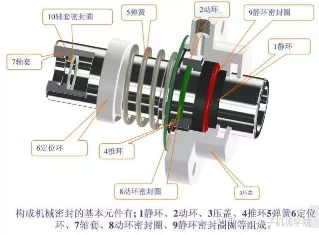 机封总是由旋转部件(黄色部分)和静止部件(橙色部分)两大部分组成,两相对运动的动,静环面成为密封的主密封面。